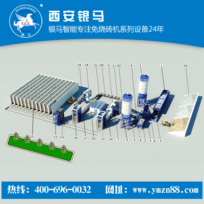 西安銀馬磚機QFT6-16路面磚設備工藝流程: